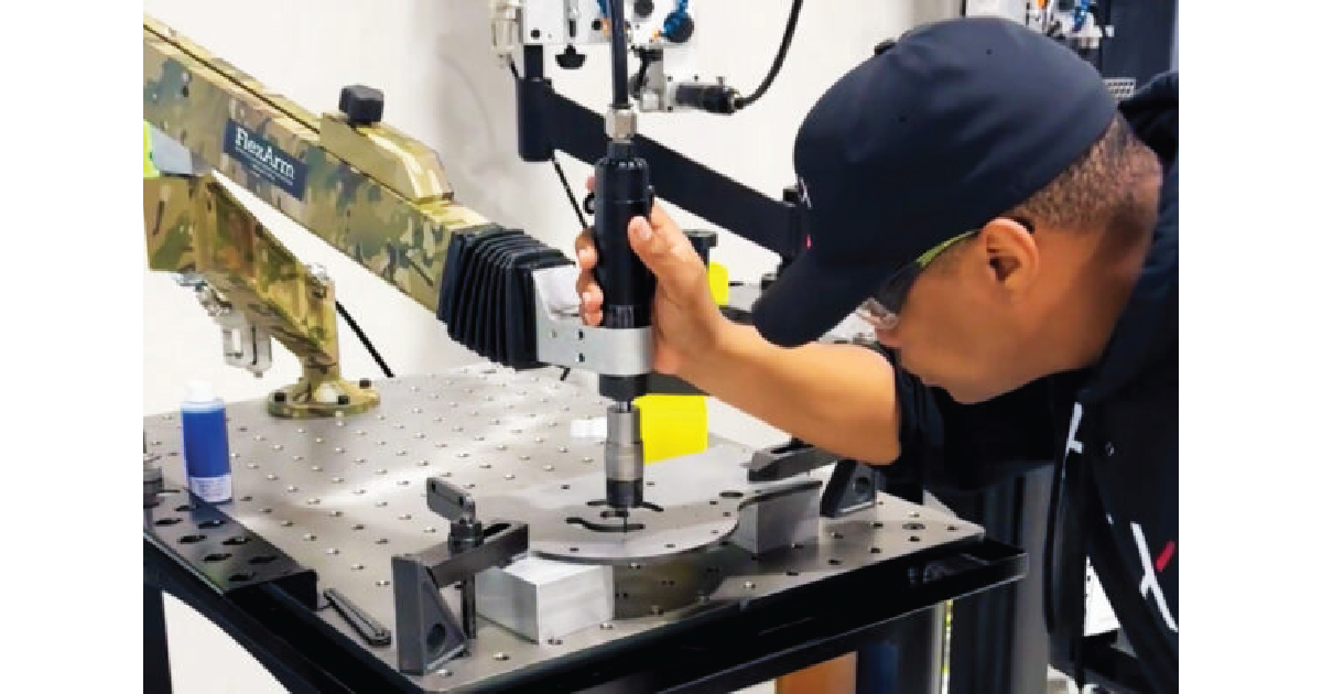 An end-user out of North Carolina was looking for a more efficient way to tap their parts. They wanted to see how the FlexArm could