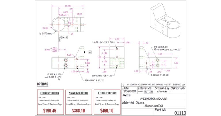 FlexCare+ utilizes an easy-to-use platform where you simply upload the design model(s) to the secure server, select the material, and provide basic contact information. The quote is sent via email and offers different pricing tiers based on the desired lead time. The user may choose expedited delivery (2 business days), standard delivery (3 business days), or an economy option (5 business days). After purchasing, the user will receive the NC code, a set-up sheet,