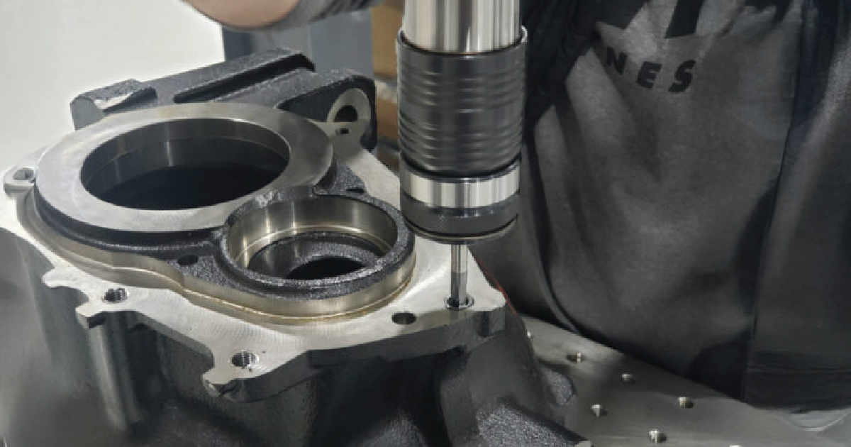 The GHM-18 (signified with the ‘M’ in GHM) was selected for the tap test because it allows vertical and horizontal tapping. First, we used an m10 tap to tap both the through and blind holes on top vertically. We then adjusted the multi-head by aligning it horizontally to the part using the alignment plug. The alignment plug ensures the tap stays perpendicular to the workpiece, helping maintain thread consistency.